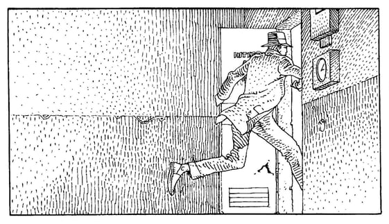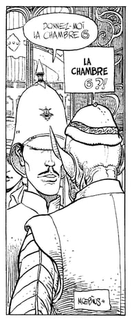 When McGoohan’s protagonist at last escapes from the enclosed world in which he’s (mostly) been trapped throughout the series, he escapes not into another location within the world of the fiction, but onto the crisp winter streets of a very real London, one day early in 1968. Giraud can by no means match the documentary clarity of this transition, but he makes it sufficiently clear that when Grubert finds his way through the last locked door in the Garage, he is also stepping out of the fiction, into the everyday world inhabited by his author and his audience.