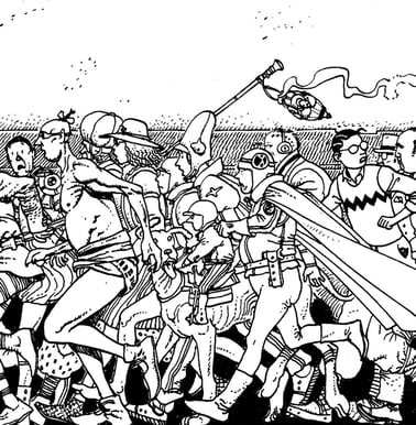 In The Prisoner, the face behind the mask is that of a madman, and madness is precisely what Cornelius accuses Grubert of in episode 34. In 36, Grubert says to Sper Gossi, “So... it is always fools and madmen who end up holding temporal power.” Alas, if not always, it is too often so.