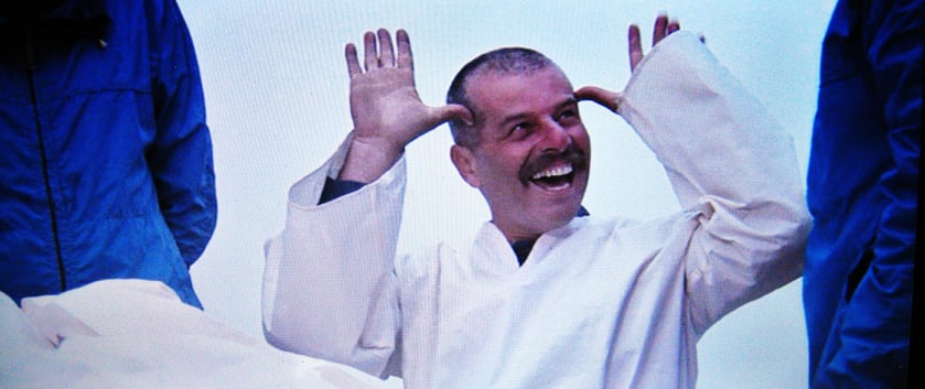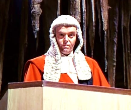 The trial for which this jury has been gathered is designed to serve a very partial idea of justice. In the last episode of The Prisoner, the proceedings are presided over by rather a pompous judge, who at one point declares, “Guilty! Read the charge.” In the Garage, this role is taken by Sper Gossi. Both present what’s going on as a kind of formality, or ceremony, to mark a change in the status of the protagonist; both, in the end, lose control of the proceedings.