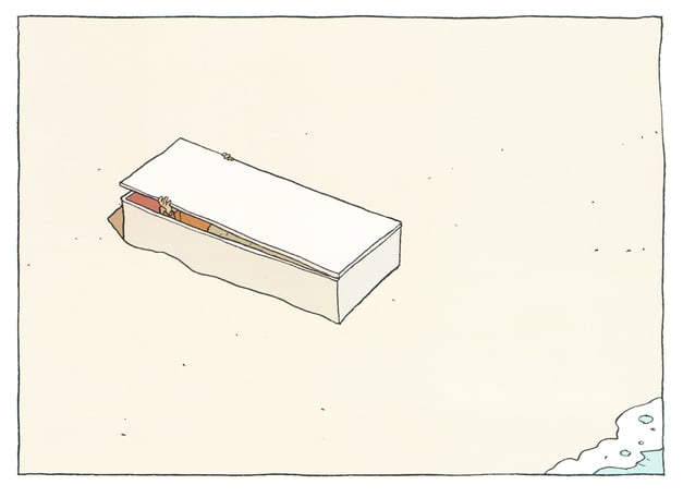 More might be said about the coffin unearthed by Catherine, as she digs down into the cellar of the castle—yes, the sandcastle has a cellar—but I intend to leave Giraud to his reading. Anyone who wants to draw a line from the coffin Catherine finds to the coffin that washes up on the beach in Giraud’s rather wonderful “Dying to See Naples” (2000) is free to do so, but I’ll forego the opportunities of fiction, and hope to encompass the remainder of the Garage with a more determined measure of sobriety and seriousness.
