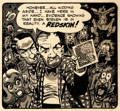 Or you do what you can’t help doing. The NEXT THRILLING CHAPTER is satirical, obviously, and I had the happy feeling it was unfolding under the spiritual guidance of Harvey Kurtzman. With MAD, Kurtzman educated a generation of counter-cultural cut-ups, and in 1954, in my favourite issue, while it was still a comic book, he replayed the Army-McCarthy hearings as a game show. So that’s another little bit of the background of the serial.
